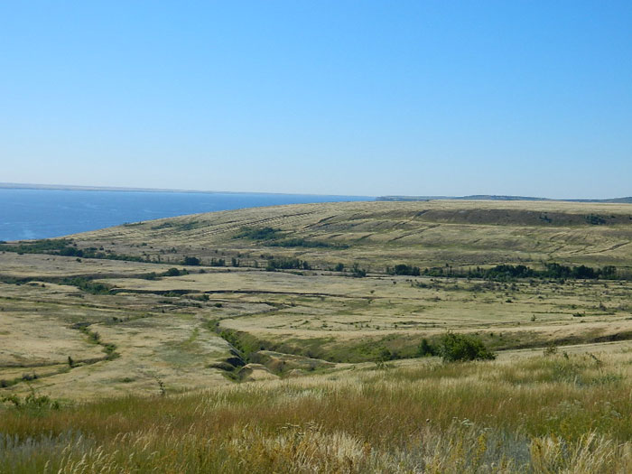 Вид на место, где располагалось с. Мюллер. Между двумя овражками располагалась колония, а на склоне горы росли виноградники.